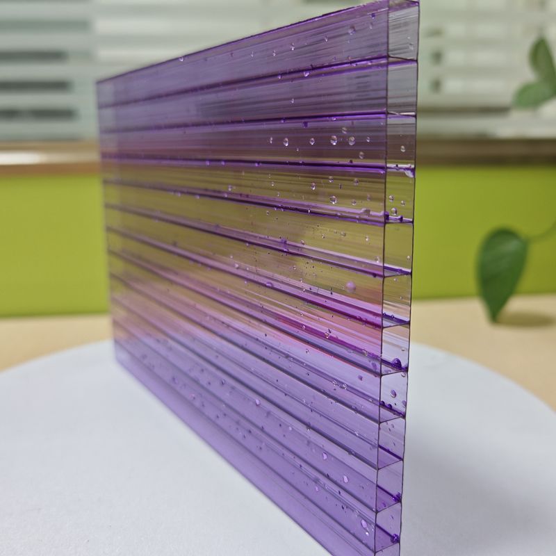 La Viola lastra cava in policarbonato è un materiale per coperture e vetrate traslucido e leggero, realizzato con resina di policarbonato vergine di alta qualità. Presenta una struttura cava o a più pareti, che offre un eccellente isolamento termico e un'elevata resistenza agli urti. La Viola tinta esalta la luminosità fornendo al contempo una diffusione della luce morbida e dai toni caldi, rendendola ideale per applicazioni decorative e funzionali.